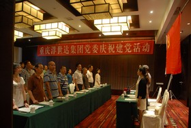 7月3日下午,洋世達集團公司黨委“紀念建黨94周年暨創(chuàng)先爭優(yōu)總結(jié)表彰大會”在金佛山天星假日酒店會議室隆重召開。本次會議由黨委組織委員杜虹同志主持,全體黨員及入黨積極分子約40人參加了活動。慶祝大會在莊嚴的國際歌聲中拉開了序幕,集團公司黨委表彰了2014-2015年度先進黨支部、優(yōu)秀黨務工作者以及優(yōu)秀共產(chǎn)黨員,并號召大家向受到表彰的優(yōu)秀黨員同志學習,努力提升自我,爭做優(yōu)秀黨員,接著全體黨員在黨旗下重溫入黨誓詞,最后,譚邦強書記作了總結(jié)講話。