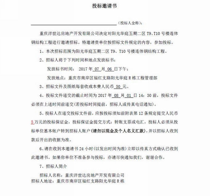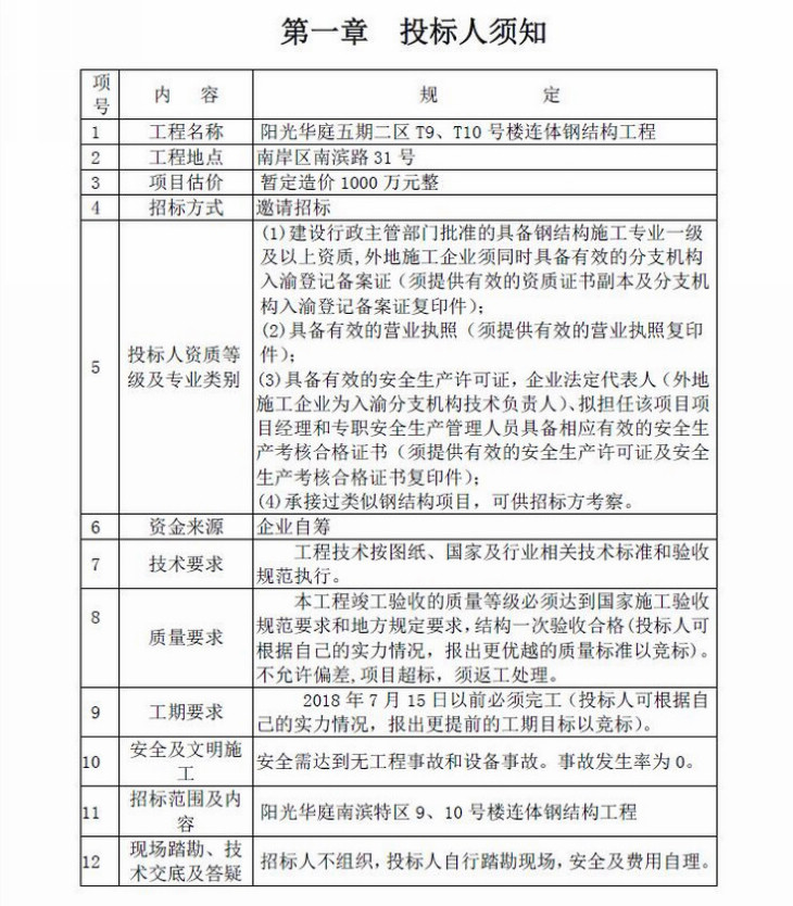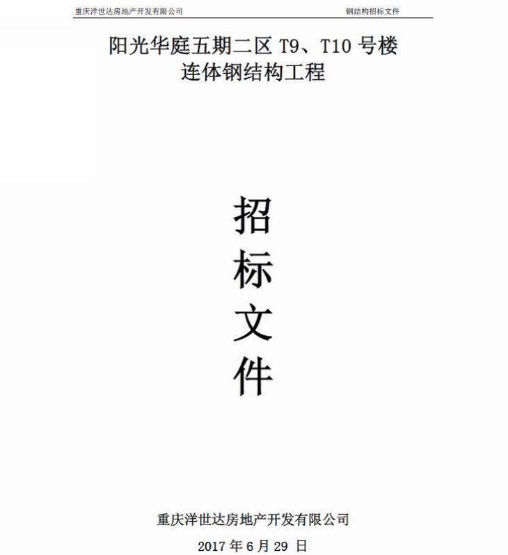 陽光華庭五期二區(qū)T9、T10號樓連體鋼結(jié)構(gòu)工程招標文件