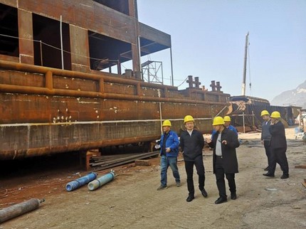 11月11日,集團(tuán)公司楊勇董事長(zhǎng)陪同彭水縣羅遠(yuǎn)江副縣長(zhǎng)視察彭水九黎船舶建造項(xiàng)目現(xiàn)場(chǎng)。該項(xiàng)目是集團(tuán)公司旗下子公司重慶帝力游艇制造有限公司承接的彭水九黎旅游運(yùn)輸服務(wù)有限公司的2艘異地船舶建造項(xiàng)目。游船總長(zhǎng)44.5米,型寬10.6米,型深3.1米,吃水1.8米;躉船總長(zhǎng)48米,型寬13.8米,型深2.8米,吃水1.8米。