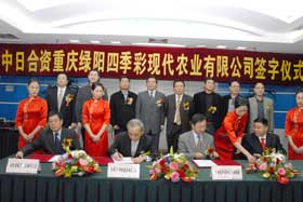 本次簽約儀式由南岸區(qū)人民政府副區(qū)長唐昕主持,共青團中央國際項目合作中心、重慶市農(nóng)業(yè)綜合開發(fā)辦公室、市農(nóng)工委、市農(nóng)業(yè)局、共青團重慶市委等單位的相關(guān)領(lǐng)導(dǎo),以及中共南岸區(qū)委、區(qū)人大、區(qū)政府、區(qū)政協(xié)主要領(lǐng)導(dǎo)及相關(guān)部門領(lǐng)導(dǎo),洋世達集團公司全體領(lǐng)導(dǎo)參加儀式,共同見證了一個由中日合資組建的現(xiàn)代化農(nóng)業(yè)企業(yè)的誕生。
