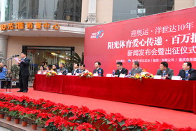 2007年11月19日,“陽(yáng)光華庭”小區(qū)入口廣場(chǎng)花團(tuán)錦簇,喜氣洋洋,由洋世達(dá)集團(tuán)與重慶市希望工程促進(jìn)會(huì)聯(lián)合舉辦的“迎奧運(yùn)?洋世達(dá)10年-陽(yáng)光體育愛(ài)心傳遞”大型捐贈(zèng)活動(dòng)的新聞發(fā)布會(huì)暨出征儀式在這里隆重舉行。
