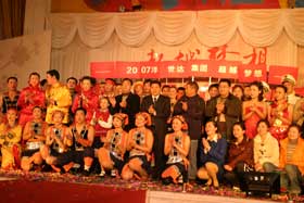 2007年2月15日,“集團(tuán)公司2007年春節(jié)年拜會”新春盛典在美心.洋人街隆重舉行?;顒訌脑缟?點(diǎn)開始,持續(xù)到晚上8點(diǎn)結(jié)束,主要活動內(nèi)容有拔河比賽、文藝表演、發(fā)紅包和聚餐等,集團(tuán)公司、各子公司員工及部分家屬約480人參加了當(dāng)天的活動。