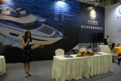 9月18日,“2013中國(guó)重慶國(guó)際休閑產(chǎn)業(yè)博覽會(huì)”在南坪重慶國(guó)際會(huì)議展覽中心盛裝啟幕。上午10時(shí)許,重慶驕陽游艇公司與灣弘娛樂公司舉行了“法國(guó)亞諾新450游艇簽約儀式”。此活動(dòng)作為休博會(huì)期間的重頭戲,正式拉開了驕陽游艇系列活動(dòng)的帷幕。
